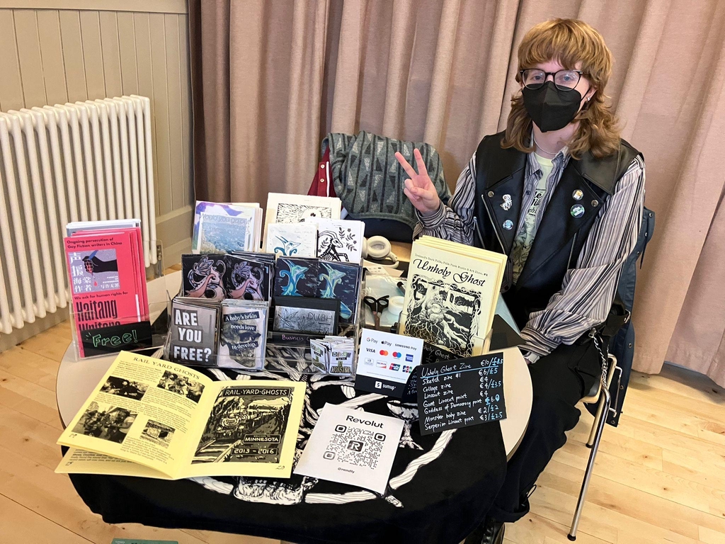 Our studio name is pronounced as "dove fun". It is a combination of Irish & Chinese and translates to Black Maple Studio. We are a team of two artists Siwi from Jingjiang, China and Pocan from Drogheda, Ireland. We both enjoy creating black and white art and making lino prints & stamps. We enjoyed attending many comic and zine fairs and decided to work together to create our own comics & zines.